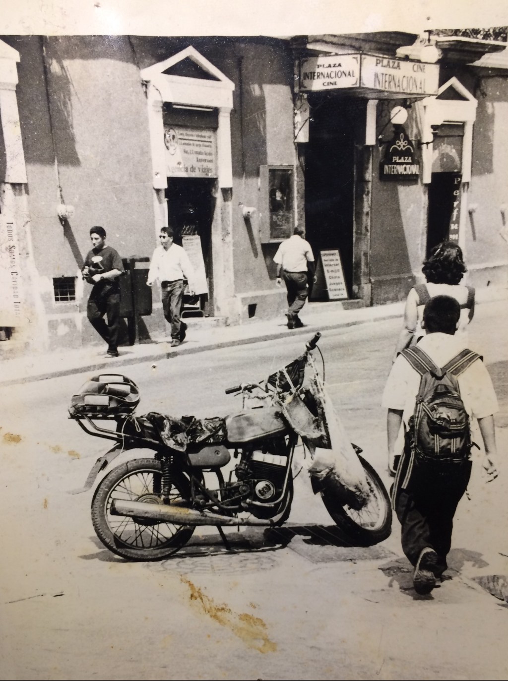 La foto es un retrato de una vieja motocicleta en una esquina del centro de Mérida, allá por el año 2003.